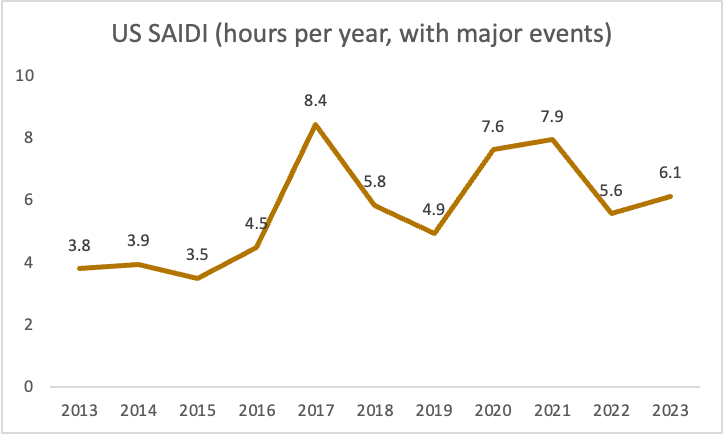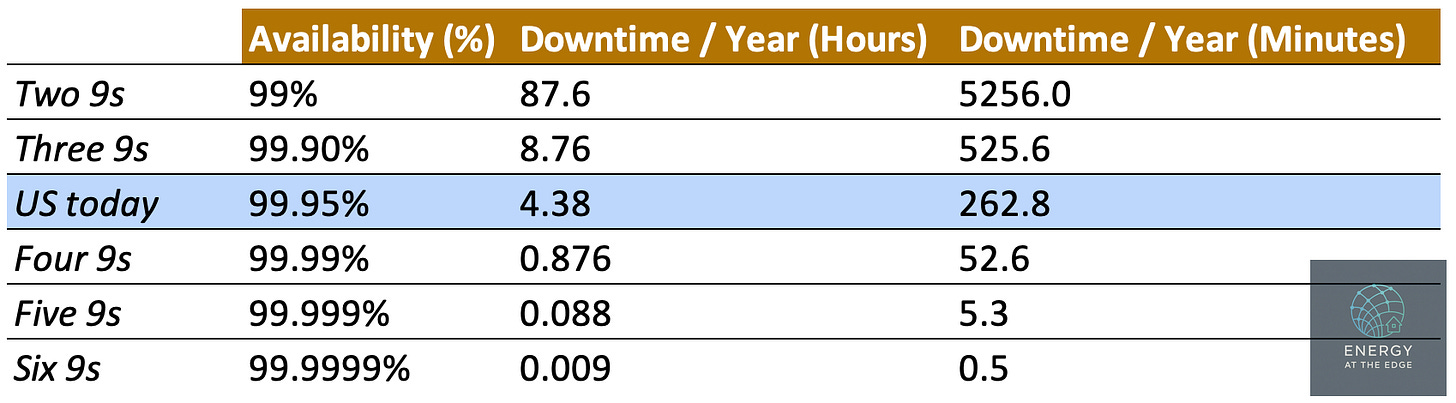 This level of reliability is not inevitable: it’s a choice. The United States (like most developed countries) expect the lights to turn on when we flip the switch. We expect a reliability close to “four 9s,” parlance for 99.99% uptime of a system.11